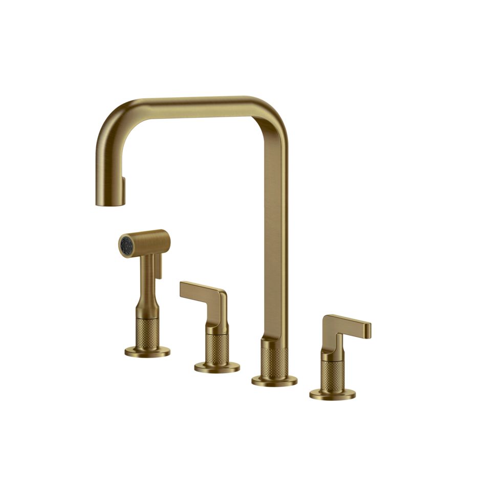 Mélangeur Design rotatif sur 360° avec douchette extractible séparée à jet dynamique, cartouche céramique et commandes séparées.