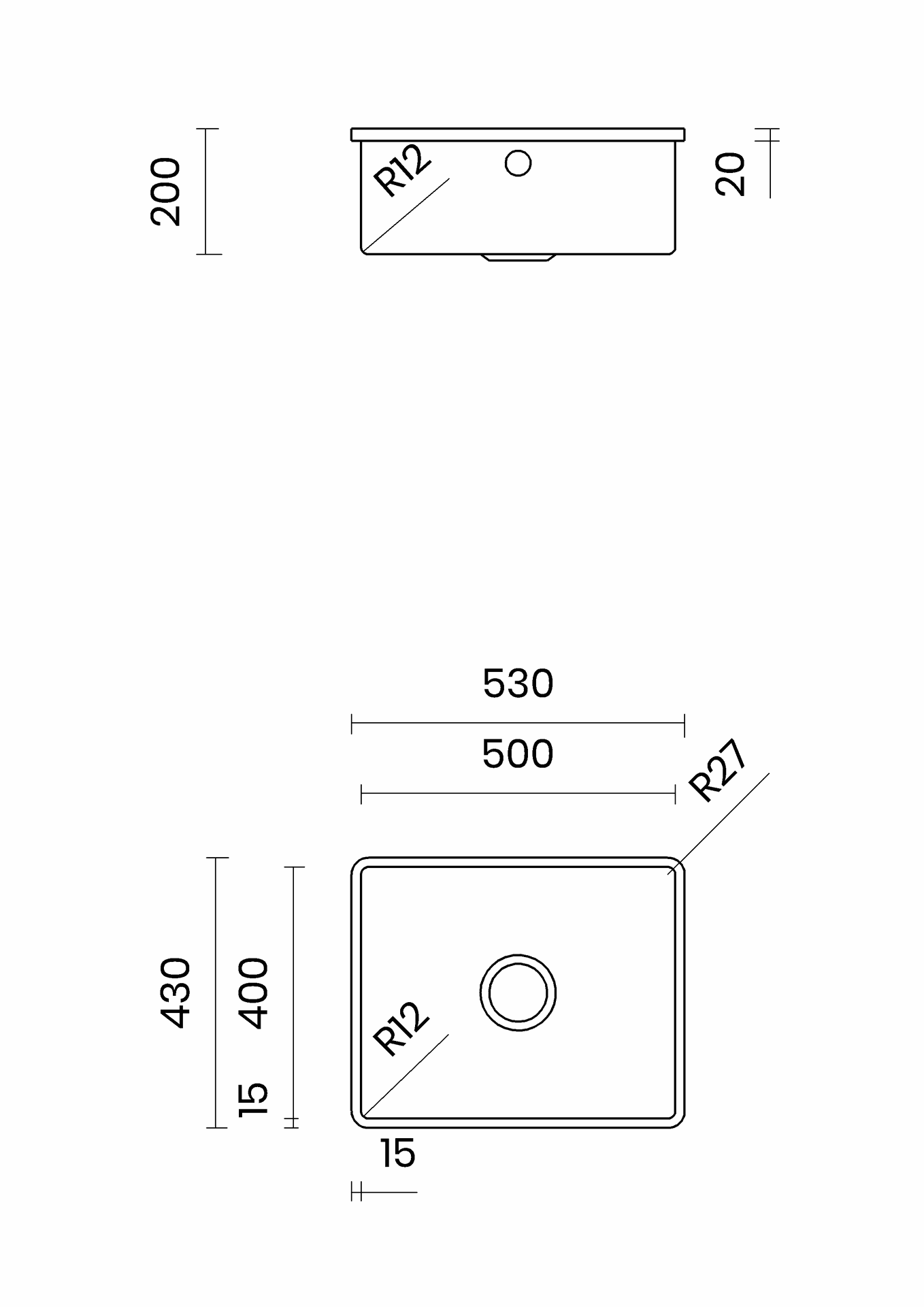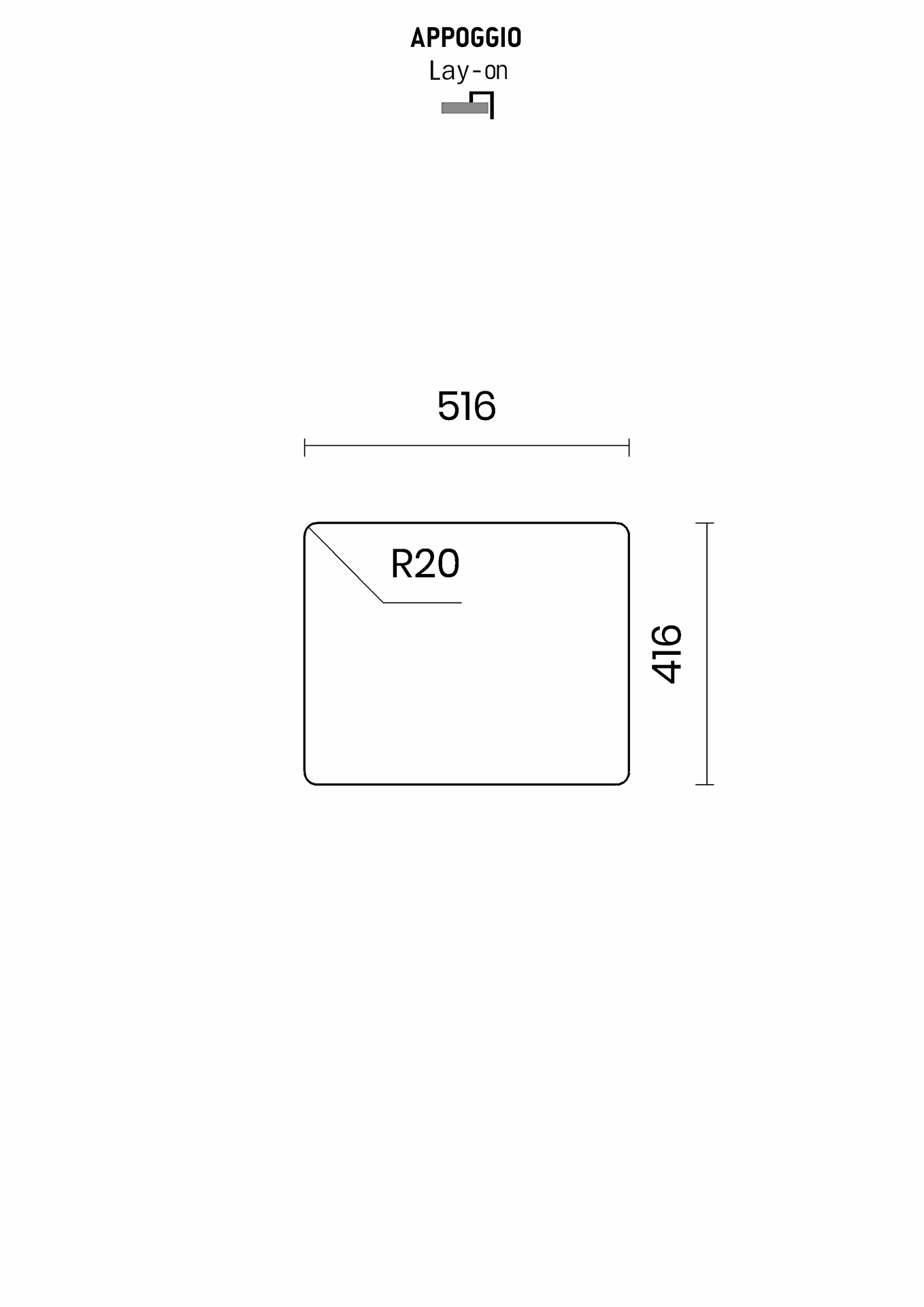 • 1 Gelaste bak met een radius van 12 mm. Inox 1mm dik. • Boord van 20mm. • Geïntegreerde overloop. • Verzonken roestvrijstalen afvoerdeksel.. • Geleverd met sifon en chrome crepine • Instalaltiewijze: Opbouw • Uitsparing : 516 x 416mm R25.