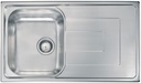 Evier Easy Fix. 1 cuve soudée + égouttoir. Inox brossé 0,7mm d'épaisseur. Réversible. 2 versions : Inox brossé ou Inox Microline. Fourni avec siphon gain de place et crépine chromée. Découpe : 835 x 475mm. Type d'installation : à encastrer.