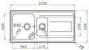'Evier Diamond Line. 1,5 cuve soudée + égouttoir. Inox brossé 0,7mm d'épaisseur. Réversible. Fourni avec siphon et crépines automatiques chromées. Découpe : 960 x 480mm. Type d'installation : à encastrer.'