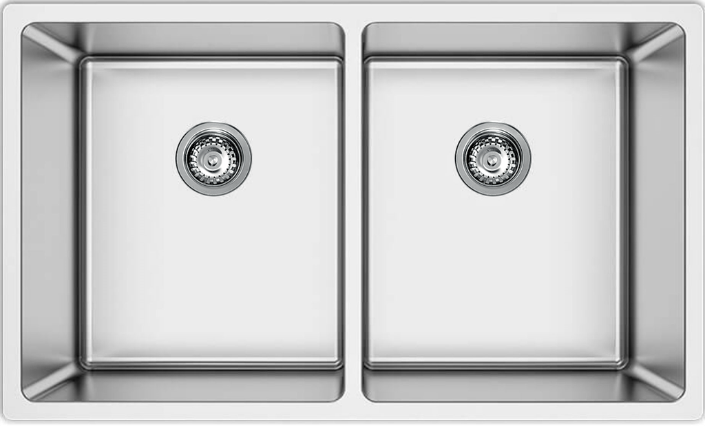 2 cuves embouties avec rayon de 15mm. Inox 1mm d'épaisseur. Fourni avec siphon, trop plein et crépines chromées. Découpe sous-encastrée : 700 x 400mm R15. Type d'installation : à sous-encastrer,.