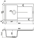 'Evier 1 cuve + égouttoir en LUISIGRANIT : Velours satiné, Look pierre naturelle (80% de Quartz), Ingriffable, Thermo-résistant à 180°, Résistant aux chocs. Fourni avec siphon et crépine chromée automatique. Réversible. Découpe : 840 x 480mm. Type d'installation : à encastrer.'