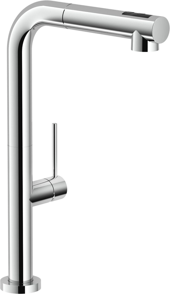 Mitigeur monocommande. Douchette extractible double jet: dynamique ou moussant. Cartouche céramique. Limiteur dynamique de débit ECO-CLIC. Bec rotatif. Finition: chrome (CH). Hauteur: 358 mm.
