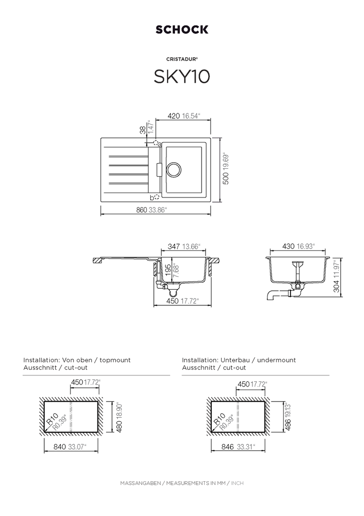 Evier 1 cuve + égouttoir en CRISTADUR: Velours satiné, Look pierre naturelle (80% de Quartz), Résistant aux griffes, Thermo-résistant à 180°, Résistant aux chocs. Fourni avec siphon, trop plein et crépine design. Réversible. Taille du sous-meuble: 45 cm Découpe à encastrer: 840 x 480 mm * Découpe à sous-encastrer: 846 x 486 mm